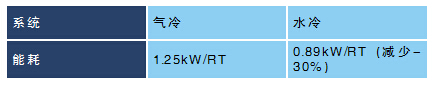 相較于傳統(tǒng)氣冷式空調系統(tǒng),冷凍水式空調系統(tǒng)可節(jié)能三成,以 40RT(冷凍噸)的系統(tǒng)為例,能耗可從 1.25kW/RT 降到0.89kW/RT。