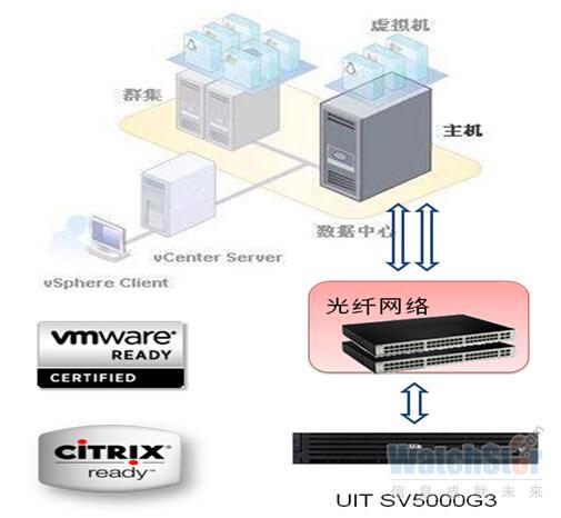 UIT供給的虛擬桌面存儲(chǔ)處理方案中,效勞器和磁盤陣列間選用SAN交換機(jī)連接,主機(jī)端組成多鏈路以進(jìn)步鏈路及數(shù)據(jù)拜訪安全性,磁盤陣列選用UIT SV5000G3商品,選用Active-Active控制器規(guī)劃,支撐8Gb FC+10Gb ISCSI混合組網(wǎng)才能,大幅度提高數(shù)據(jù)存儲(chǔ)功用,一起能夠支撐很多高并發(fā)I/O拜訪;模塊化的冗余規(guī)劃,共同的緩存?zhèn)浞菁寄?,增?qiáng)型RAID技能,確保了存儲(chǔ)體系的可靠性,完成了數(shù)據(jù)的安全維護(hù)。