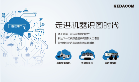 以感知型攝像機為基礎,通過安防大數據平臺提供存儲、分析與檢索引擎,為公安、交通、零售等不同行業(yè)提供人車大數據檢索研判、交通流量管控、商業(yè)客流分析等視頻大數據應用,推動視頻監(jiān)控走向機器識圖時代。