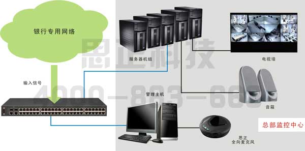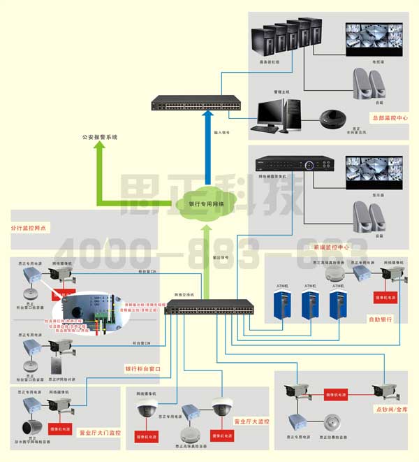 銀行監(jiān)控系統(tǒng)包括了各儲蓄所、分理處、支行等營業(yè)場所防護(hù)區(qū)域?qū)崟r圖像的本地遠(yuǎn)程監(jiān)視、存儲現(xiàn)場聲音與報警數(shù)據(jù)。同時系統(tǒng)還必須具有雙向語音功能的遠(yuǎn)程調(diào)度與管理、與公安部門應(yīng)急聯(lián)動系統(tǒng)有機結(jié)合等功能。