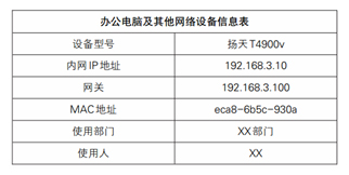 表3 辦公電腦及其它網(wǎng)絡設備信息表