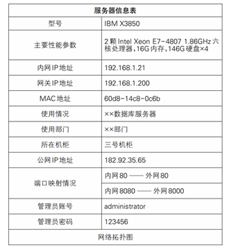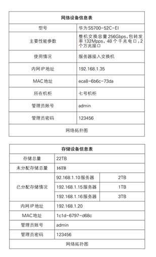 表1 服務器、網(wǎng)絡設備及儲存設備信息表